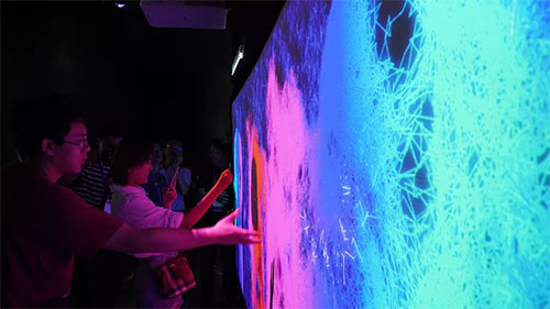 InfoComm現(xiàn)場(chǎng),索尼采用了最新上市的兩臺(tái)6500流明VPL-F640HZ激光工程投影機(jī)配以VPLL-Z3003超短焦鏡頭,結(jié)合MiTENE 4K AR娛樂(lè)互動(dòng)系統(tǒng),為觀眾打造了新奇的娛樂(lè)互動(dòng)體驗(yàn)。人們可用不同的手勢(shì)將畫(huà)面“打散”直至消失,或引導(dǎo)畫(huà)面隨身而動(dòng)。該展項(xiàng)采用了多臺(tái)傳感器,支持多人同時(shí)體驗(yàn),共享妙趣時(shí)刻,參與感十足。