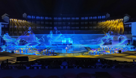 地點:江蘇無錫 項目介紹:禪意小鎮(zhèn)·拈花灣歷時五年,建設(shè)成為一個自然、人文、生活方式相融合的旅游度假目的地,讓人們體驗無處不在的禪意生活,從而開創(chuàng)“心靈度假”的休閑旅游新模式。“拈花一笑”投影秀是小鎮(zhèn)的重要演出。該演出包含了18米高的大型不銹鋼動態(tài)雕塑投影,紗幕投影,以及水下舞臺投影,配合全息數(shù)字影像屏、霧森、景觀環(huán)境藝術(shù)照明等視覺演繹手法,實現(xiàn)了舞臺演出與現(xiàn)實景觀的完美結(jié)合。 技術(shù)介紹:贏康承擔了投影系統(tǒng)的設(shè)計、安裝、綜合調(diào)試等工作,提供了十余臺科視 Crimson WU30 投影機,Alcorn 娛樂播控系統(tǒng)。 |